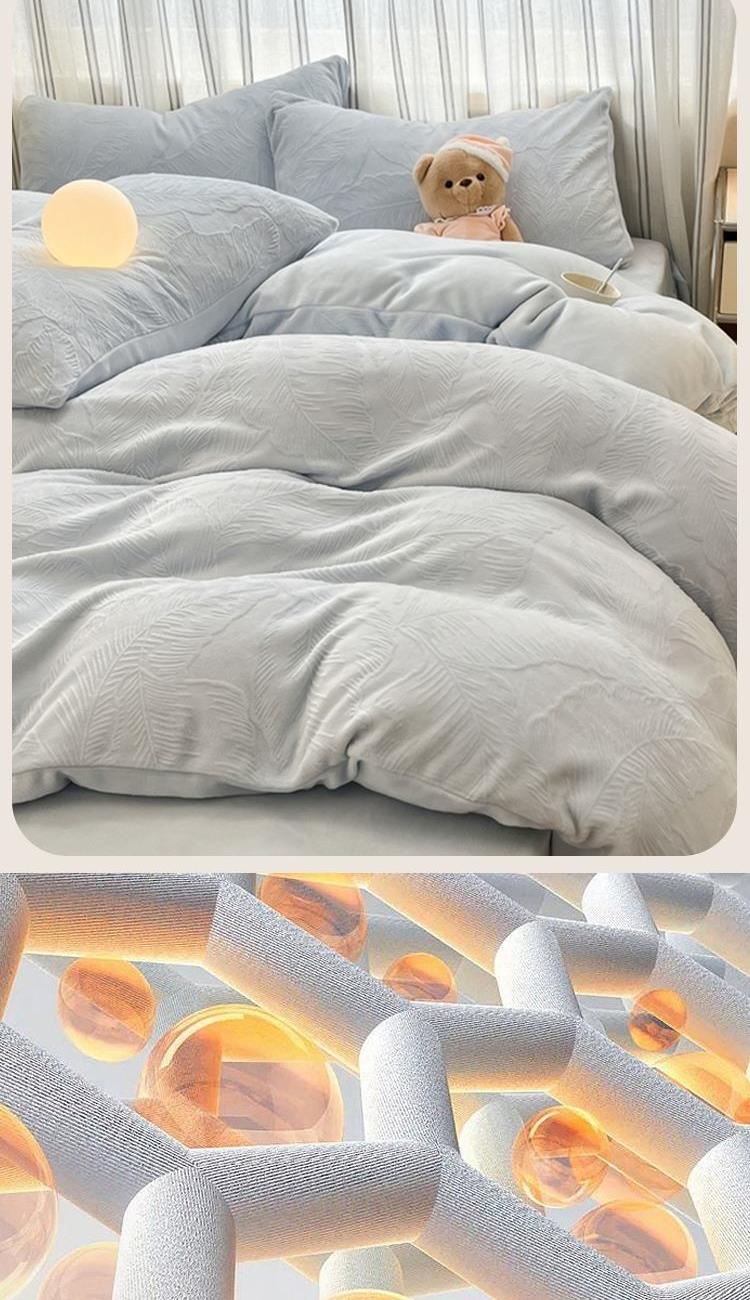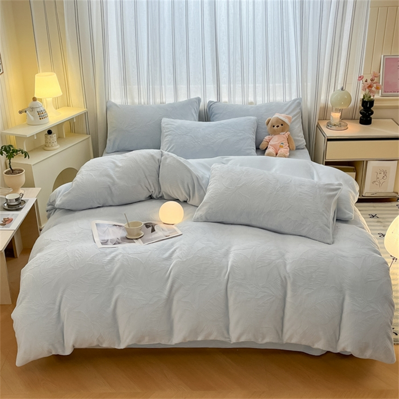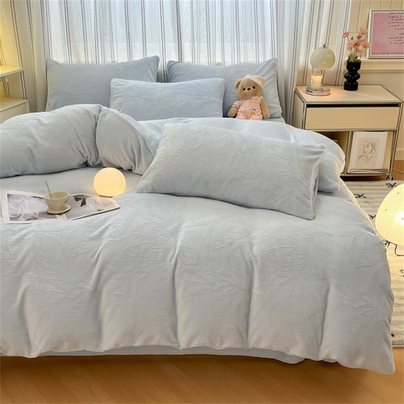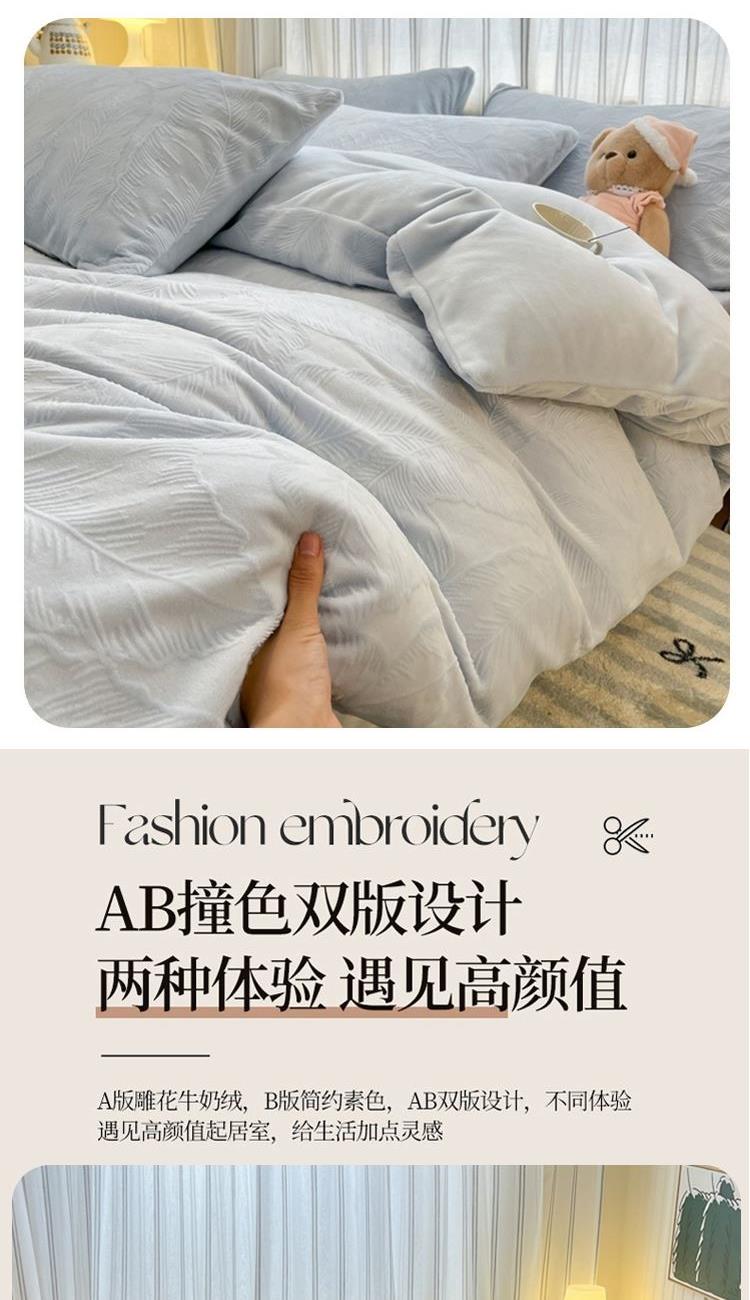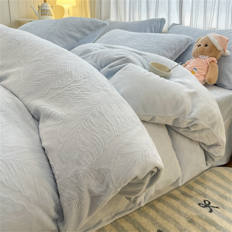 啄木鳥牛奶絨雕花四件套(被罩:200*230cm) 啄木鳥牛奶絨雕花四件套(被罩:200*230cm)