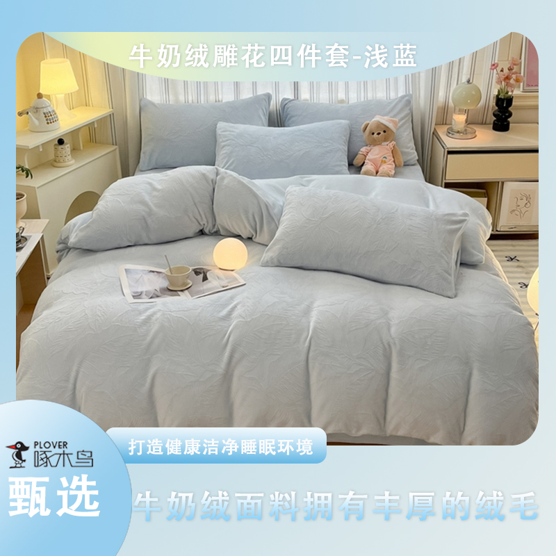 啄木鳥牛奶絨雕花四件套(被罩:200*230cm)