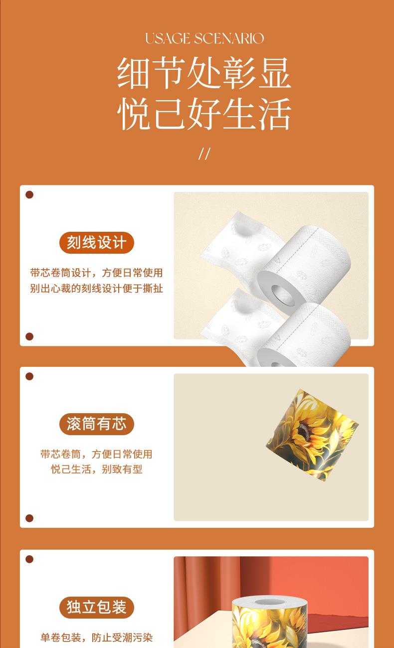 銷售規格:100*120mm/5層 130g 12卷/提; 香型:無香 主要原料:原生木漿 保質期:3年 1、精選原生木漿,柔韌性更好 2、優等品等級,高標準品質 3、紙質綿柔細膩,擦拭不留屑,親膚零刺激 4、濕水性好,強韌吸附水漬不易破 5、五層壓合緊密,纖維排列細致,拉扯不易破 6、原生木漿,天然安心